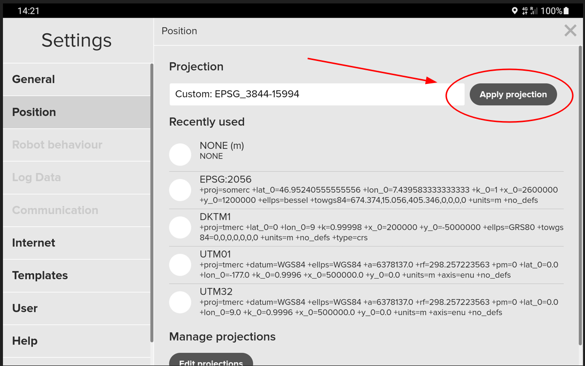 You will now see your newly saved projection in the 'Edit projections' menu and have successfully imported your .prj file