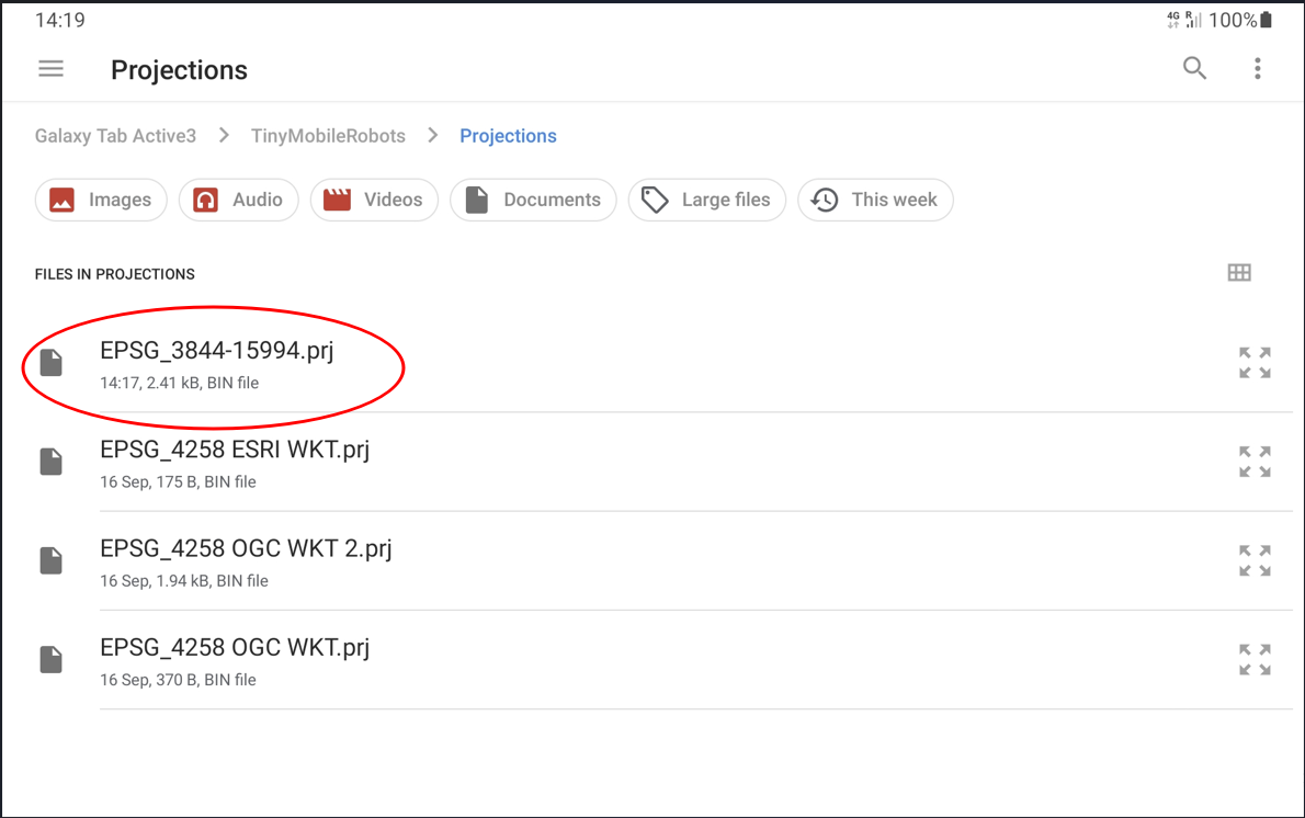 Navigate to the folder where you copied your .prj file in step 1 and select it from your tablet's internal memory